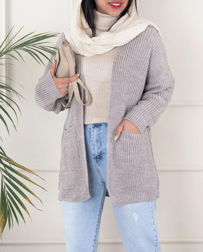 بافت زنانه جلوباز جیبدار بلند فری سایز تا 52