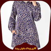شومیز مانتویی زنانه پلنگی سورمه ای