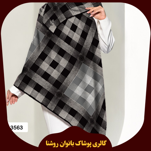 روسری نخی مشکی طرح چهارخونه ریشه پرزی قواره 120