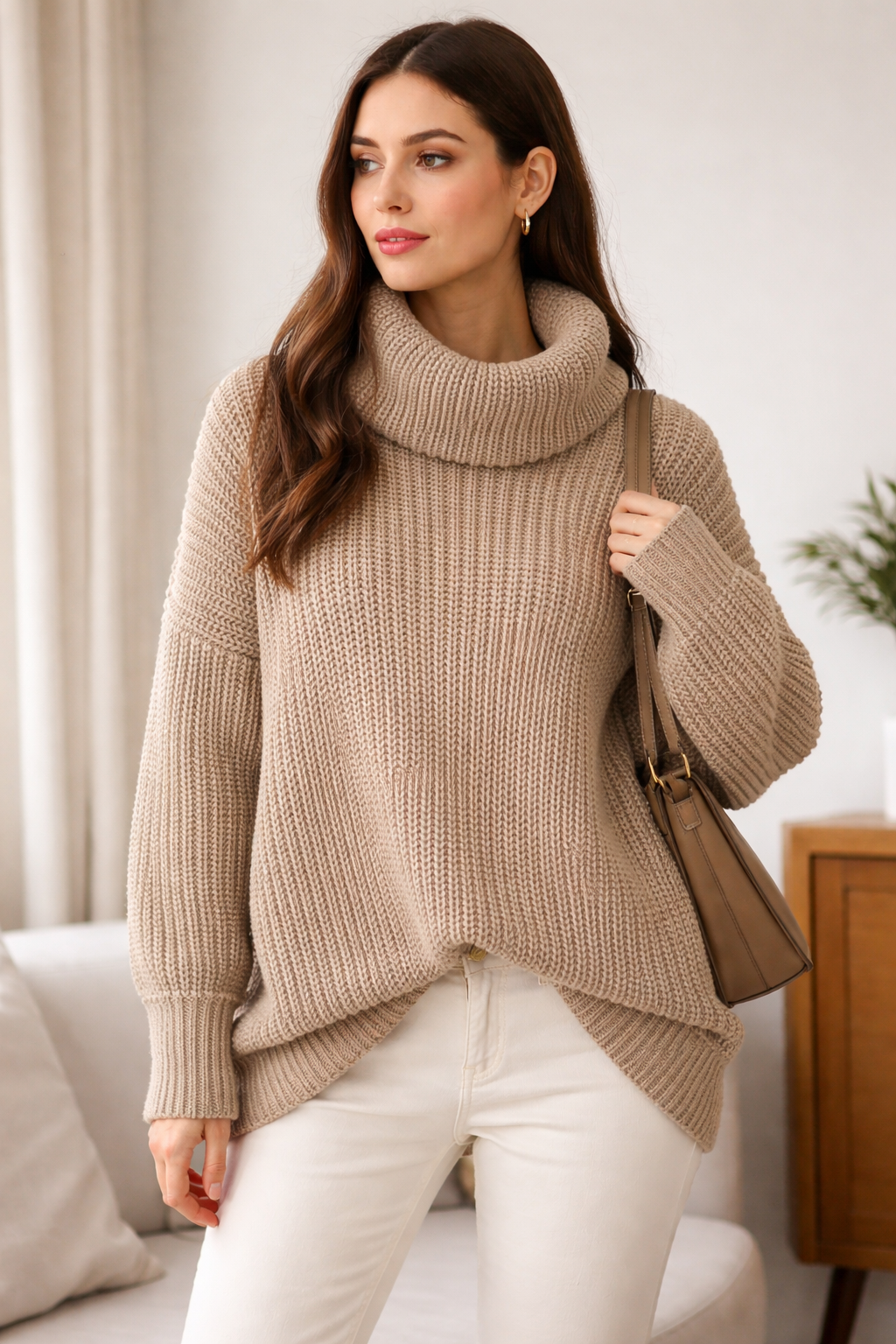 ناموجودبافت (بلوز ژاکت) زنانه یقه اسکی شل