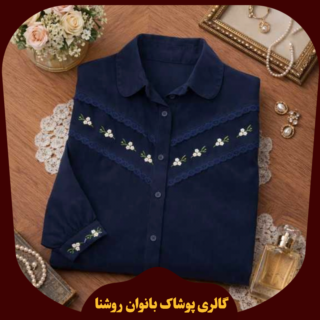 شومیز مانتویی زنانه پلنگی سورمه ای